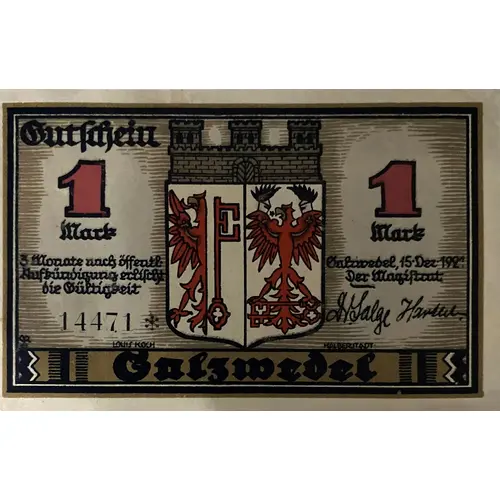 | 裏面の銘文 | GUTCHEIN ÜBER 1 MARK SALZWEDEL |