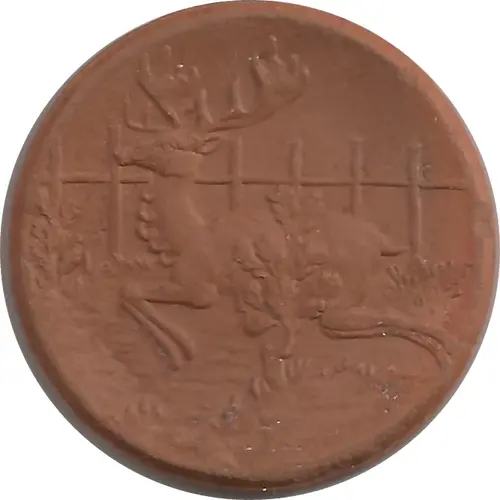 | Obverse description | Oak branch in front of deer running on the left. Fence in background. |