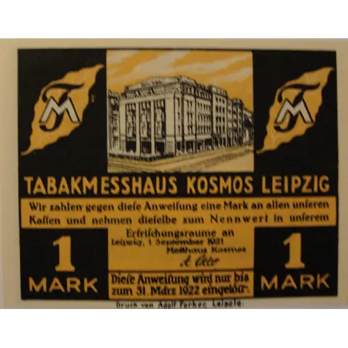 | Obverse lettering | tabakmesshaus kosmos Leipzig 75 pfennig |