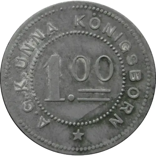 | Obverse lettering | A.G.K. UNNA-KÖNIGSBORN 1.°° ★ |