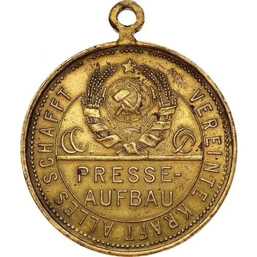 | Obverse lettering | VEREINTE KRAFT ALLES SCHAFT СССР PRESSE- AUFBAU |