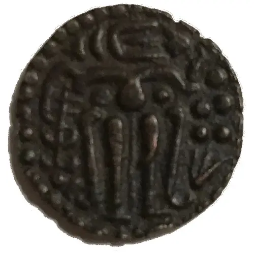 | Obverse description | King BhuvanaikaBahu standing on a lotus stem holding a hanging lamp and probably a jasmine flower. 5 spheres on the right surrounded by 40-43 points |