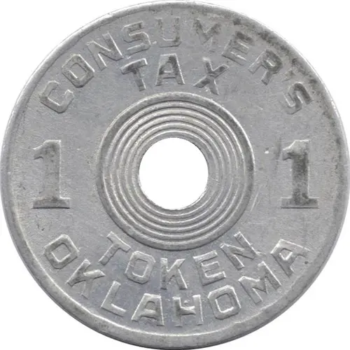 | Obverse lettering | CONSUMER`S TAX 1 1 TOKEN OKLAHOMA |