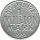 | Reverse lettering | NOTMÜNZE 1 MILLION MARK 1923 |