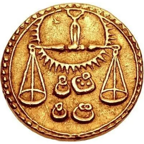 | Obverse description | Scales; radiate sun behind; set of four weights below |