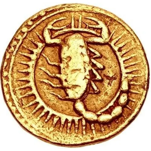 | توضیحات روی سکه | Scorpion left; radiate sun behind |