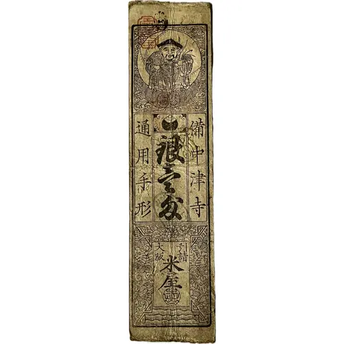 (Translation: Bichutsuji Temple Silver Three Contract Osaka Rice dealer Blue paper money?)
