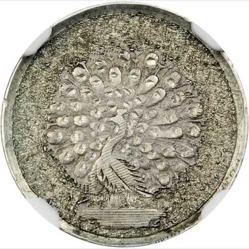 | Ön yüz açıklaması | Peacock facing left with full display surrounded by lettering. This is also the Coat of Arms of the Konbaung Dynasty, the last independent rulers of Myanmar. |