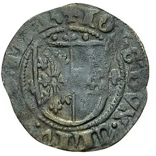| Obverse description | 2-fold arms divided vertically, lillies to sides and to top between dots. |