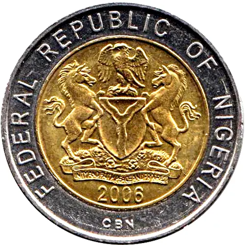 | Obverse lettering | FEDERAL REPUBLIC OF NIGERIA UNITY AND FAITH PEACE AND PROGRESS 2006 CBN |