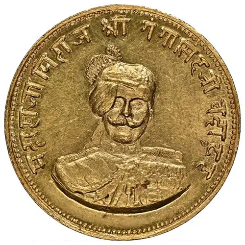 | Obverse description | Maharaja facing front with turban, lettering around. |