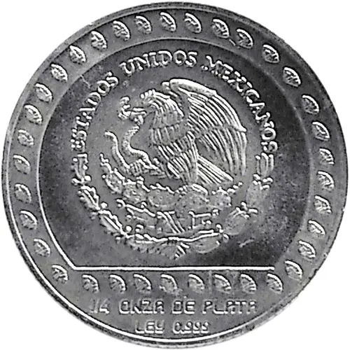 | Obverse lettering | ESTADOS UNIDOS MEXICANOS 1/4 DE ONZA DE PLATA LEY 0.999 (Translation: United Mexican States 1/4 Silver ounce Fineness .999) |