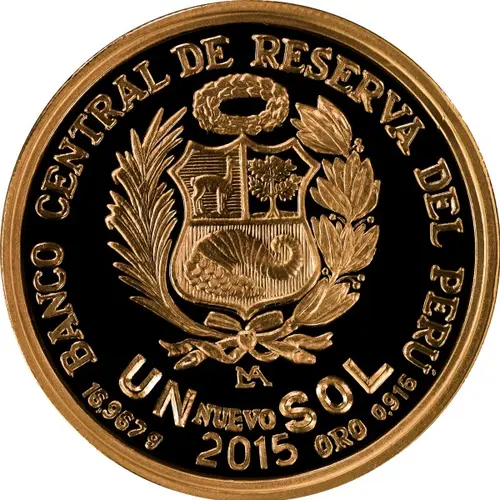 | Obverse lettering | BANCO CENTRAL DE RESERVA DEL PÉRU UN NUEVO SOL 16.967 g ORO 0.916 2015 |