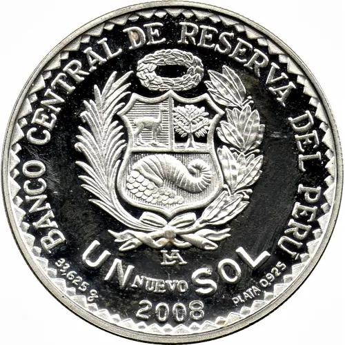 BANCO CENTRAL DE RESERVA DEL PÉRU UN NUEVO SOL 33.625 gr 2008 PLATA .925 |