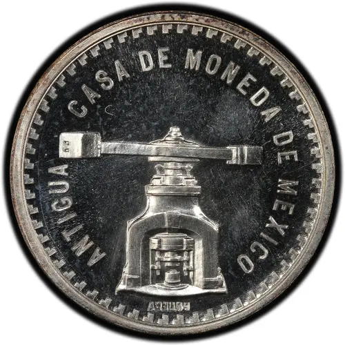 | Obverse lettering | ANTIGUA CASA DE MONEDA DE MÉXICO ABEURP (Translation: Old Mexican Mint) |