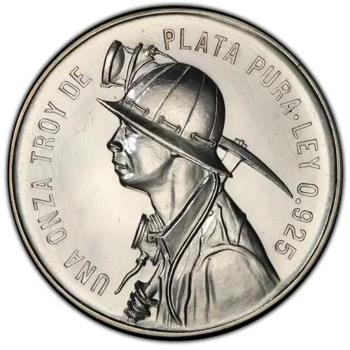 | Obverse lettering | UNA ONZA TROY DE PLATA PURA.LEY 0.925 |