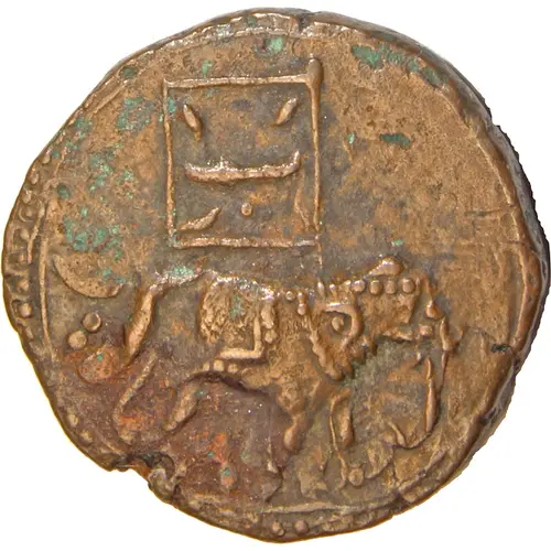 | Obverse description | Elephant to Right. Persian `Be` in flag above |