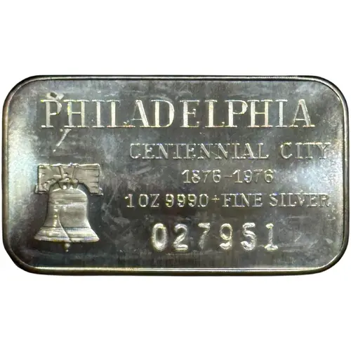 | Obverse lettering | PHILADELPHIA CENTENNIAL CITY 1876-1976 1 OZ 999.0 + FINE SILVER |