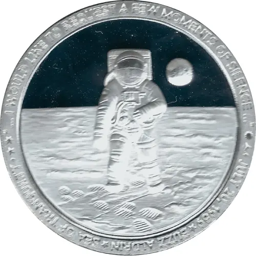 | Obverse lettering | JULY 20, 1969 BUZZ ALDRIN SEA OF TRANQUILITY `... I WOULD LIKE TO REQUEST A FEW MOMENTS OF SILENCE ...` |