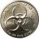 International symbol for biological hazard centered. Wording around the top `ZOMBUCKS CURRENCY OF THE APOCALYPSE`. On on the bottom, details of weight and purity. |