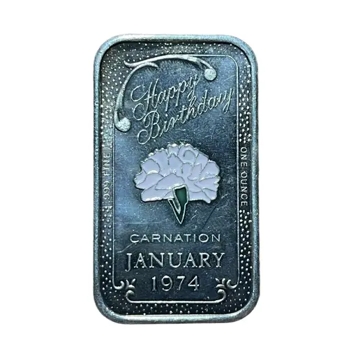 | Obverse lettering | Happy Birthday Carnation January 1974 |