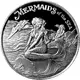 The obverse depicts three beautiful mermaids in the sea, two sitting on rocks while another is diving into the waters. |