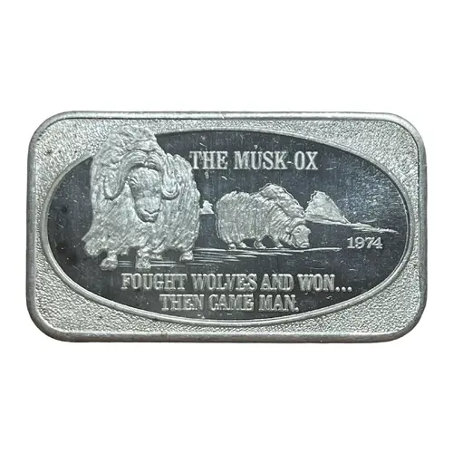 | Obverse lettering | THE MUSK-OX 1974 FOUGHT WOLVES AND WON… THEN CAME MAN. |