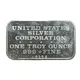 | Reverse lettering | UNITED STATES SILVER CORPORATION ★ ★ ★ ★ ★ ONE TROY OUNCE .999+ FINE 0256 |