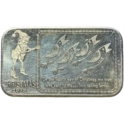 | Obverse lettering | On the fourth day of Christmas my true love sent to me ... four calling birds. CHRISTMAS 1973 |