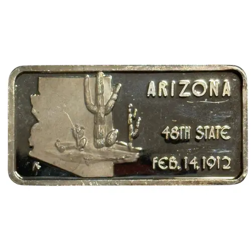 | Reverse lettering | ARIZONA CAPITAL - PHOENIX FORTY EIGHTH STATE ONE TROY OZ. .999 ES. HM 76P |