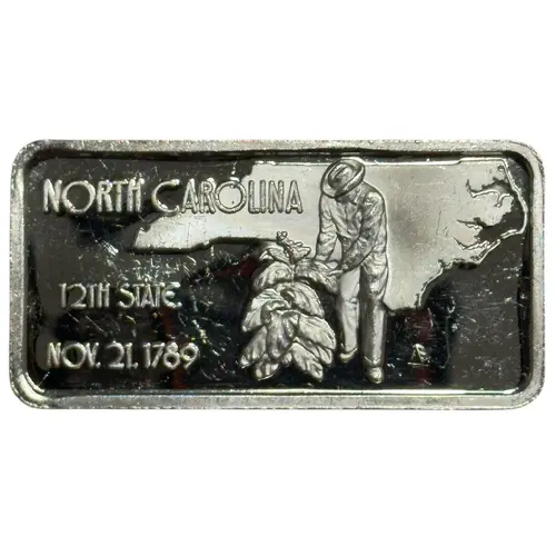 | Reverse lettering | NORTH CAROLINA TWELFTH STATE CAPITAL- RALEIGH ONE TROY OZ. 999 F.S. HM74P |