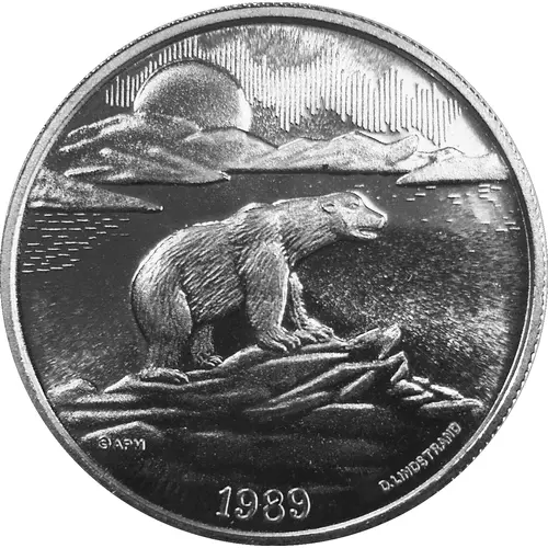 | Obverse description | Polar Bear under full moon and Northern light. |