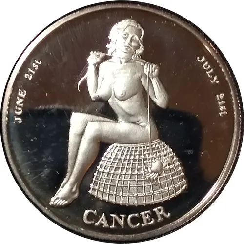 | 裏面の説明 | `The Zodiac Beauties` across top; Connoiseurs Club Limited Edition in script in center; One Troy Ounce .999 Pure Silver across bottom. |