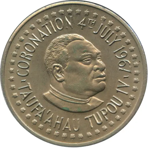 | Obverse lettering | CORONATION 4TH JULY 1967 TAUFA`AHAU TOUPOU 1V |