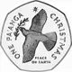 | Reverse description | Flying peace dove facing left with olive branch in beak, star above. |