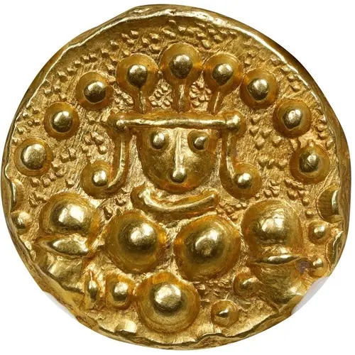 Technical/Grading: Struck in 3.5 grams of gold, the technical quality of these Pagodas can vary. High-points susceptible to wear or weakness include the facial features of the deity, intricate details of their attributes, and any legends. A well-preserved example will exhibit strong strike definition on these areas. Many specimens show evidence of irregular planchet preparation or off-center strikes, common for hand-struck coinage. Sharpness of the devices and clarity of the field are key indicators for assessing grade.