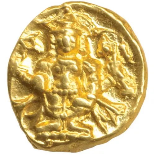 Technical/Grading: Struck in gold with a standard weight of 3.42 grams, this coin's technical qualities are typical for late Vijayanagara issues. High-points susceptible to wear or weak strike include the deity's head and attributes on the obverse, and the central characters of the Nagari legend on the reverse. Planchets were frequently hand-prepared, leading to some irregularity in shape and thickness. Collectors should prioritize strong, centered strikes, full detail on both sides, and minimal die wear, which are crucial for achieving higher grades given the inherent variability of these historical issues.