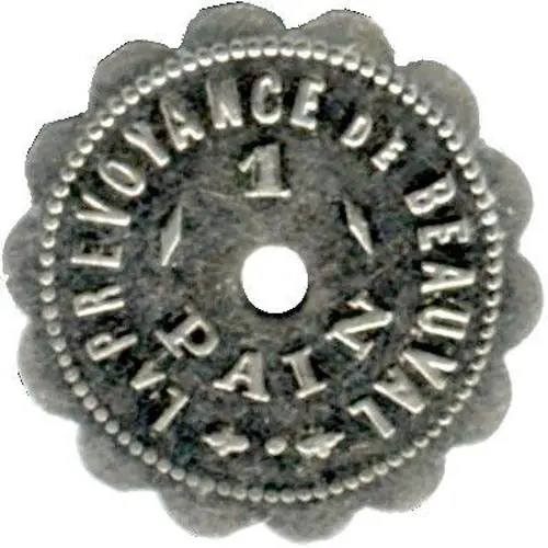 | Obverse lettering | la prévoyance de Beauval 1 Pain |