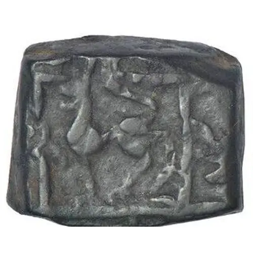 | 正面描述 | Obv: Lion with front paw raised facing left within a rectangle; traces of Devanagari legend around. |