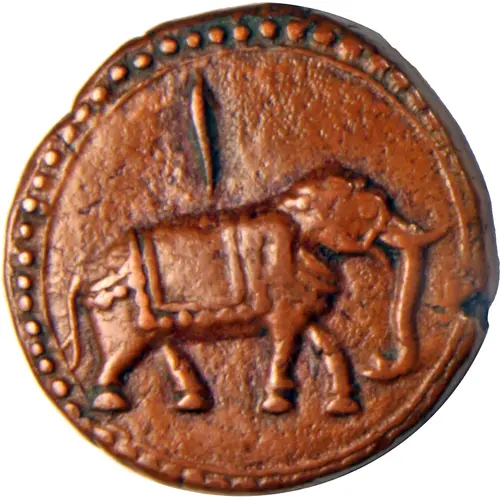 | Obverse description | Elephant to Right with persian `Alif` above |