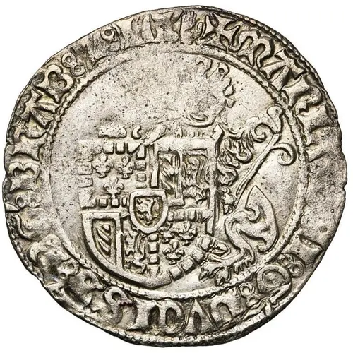 | 正面描述 | Seated lion holding a shield with Burgundian arms. Legend ends with mintmark |