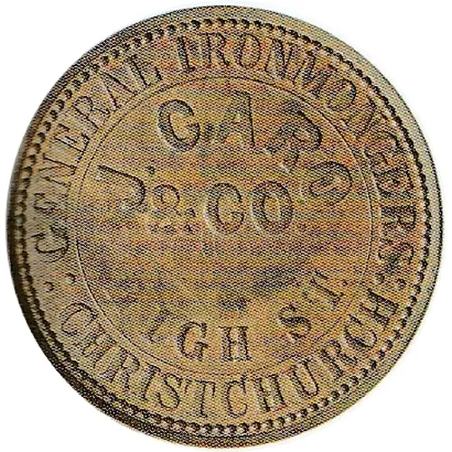 | Obverse lettering | GENERAL IRONMONGERS J. CARO & CO. HIGH STREET CHRISTCHURCH |