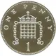 | Reverse description | A crowned portcullis with chains (an adaptation of the Badge of Henry VII which is now the Badge of the Palace of Westminster), denomination in words above and numeral below. |