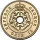 Reverse description Value written within sprigs, hole in center, name of country around outside, date below.