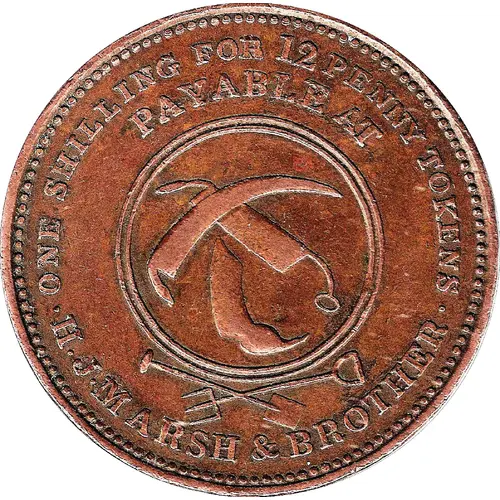 | Obverse lettering | ONE SHILLING FOR 12 PENNY TOKENS PAYABLE AT H.J.MARSH & BROTHER. |