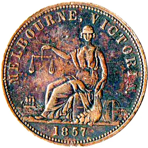 | Obverse lettering | MELBOURNE, VICTORIA. 1857 |