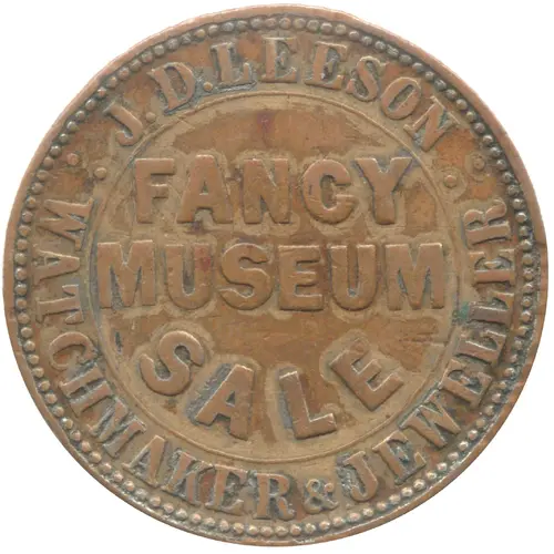 | Obverse lettering | J.D.LEESON :WATCHMAKER & JEWELLER: FANCY MUSEUM SALE |