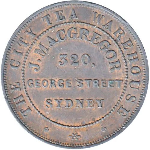 | Obverse lettering | THE CITY TEA WAREHOUSE J.MACGREGOR 320, GEORGE STREET SYDNEY |