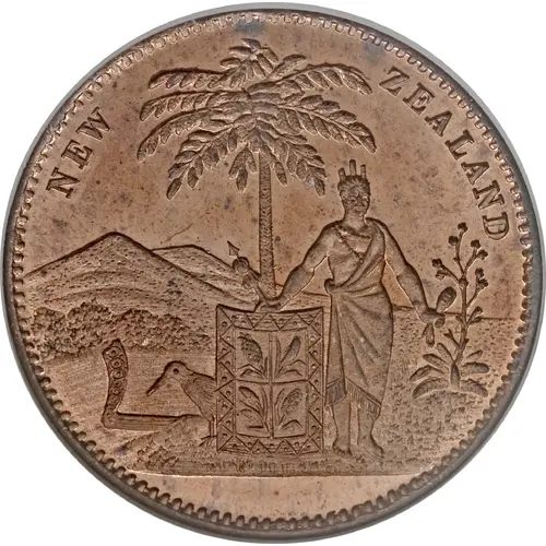 | Obverse description | Maori warrior standing by tree fern with shield, kiwi and canoe in front of mountains |