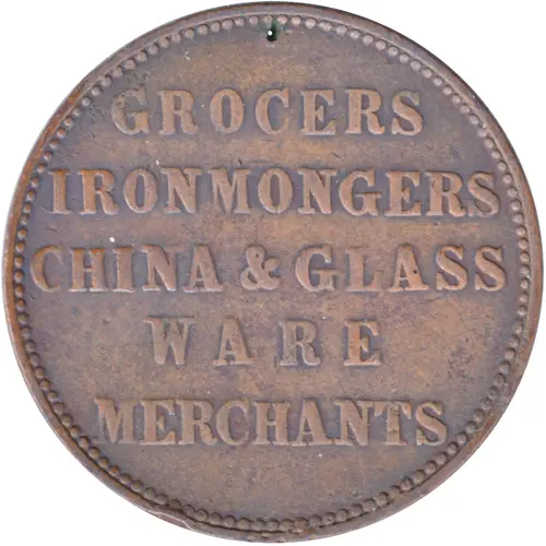 | Obverse lettering | GROCERS IRONMONGERS CHINA & GLASS WARE MERCHANTS |